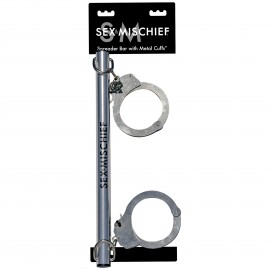 Barre d'écartement Sex And Mischief avec menottes en métal à ses extrémités pour poignets ou chevilles. La barre mesure 66 cm de longueur et les menottes disposent de clefs et d'un système de déblocage rapide.